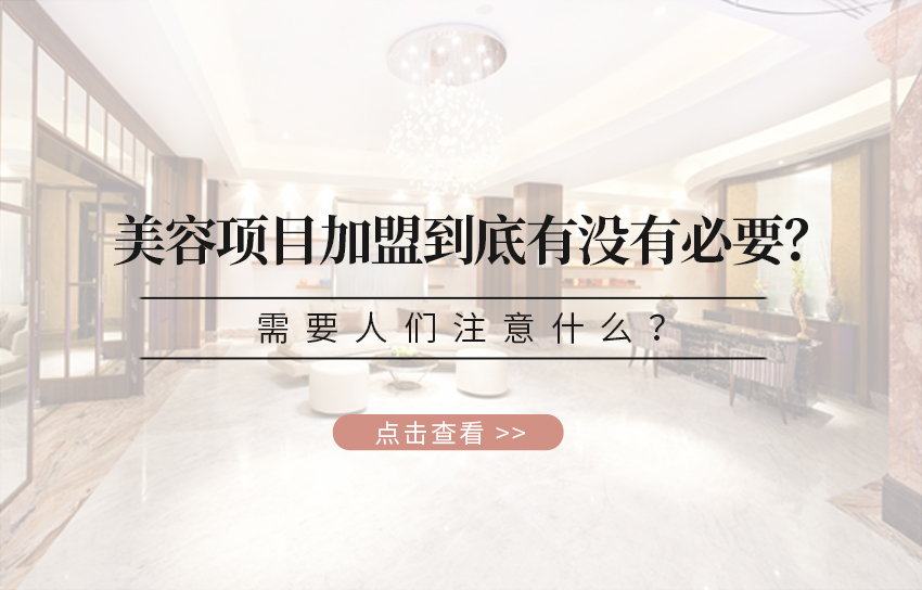 2.需要注意什么? 如果人们确实已经将目光投向了美容项目加盟,那么一定要了解加盟机构的正规程度,经过了解后才发现,有些加盟平台实在是不怎么正规,虽然收费标准很低,但是却拿钱不办事儿,收了加盟费用之后就销声匿迹了,那么很明显自己上当受骗了,这样的公司一定不能够进入自己的视野当中。另外还要了解的就是后续的培训过程了,如果发现,某些公司根本不能够提供后续的培训项目,只能够偶尔进行培训,或者只能提供入职培训而已,那么同样不能够符合自己的实际需要。换句话说,人们确实应当选择可靠的美容项目加盟公司,选择过程中,一定不要被虚假项目公司所打出的各种幌子所迷惑,否则的话辛辛苦苦所赚来的钱,恐怕就真的打了水漂。