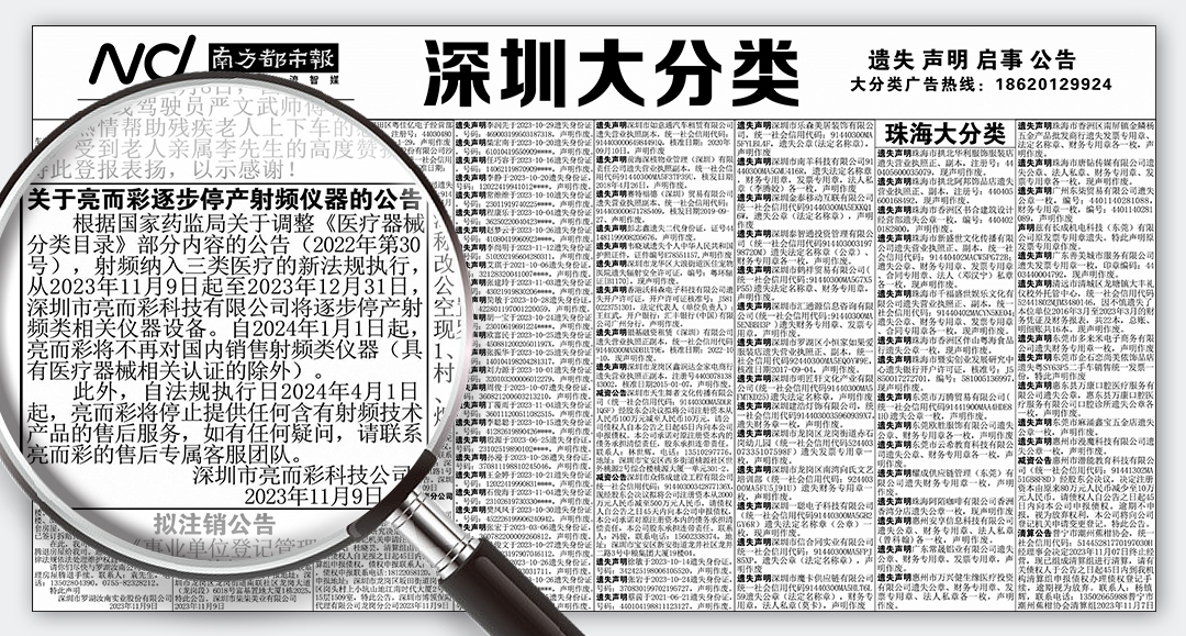 11月9日,关于“亿万28网页在线玩-亿万28入口网页版-万28官网下载最新版-亿万e网址pg-亿万28网页版网址-亿万28赏金女王-亿万28pg电子逐步停产射频仪器”的公告信息,正式刊登于新京报(A08版右下方)及南方都市报(深圳版面左上方)。